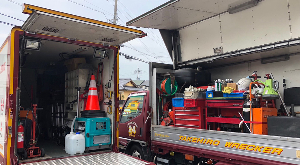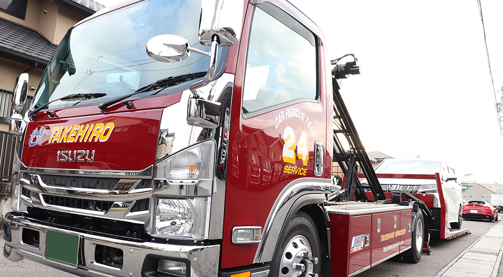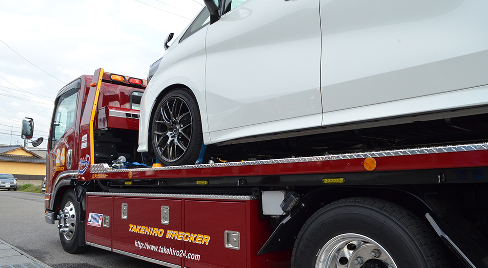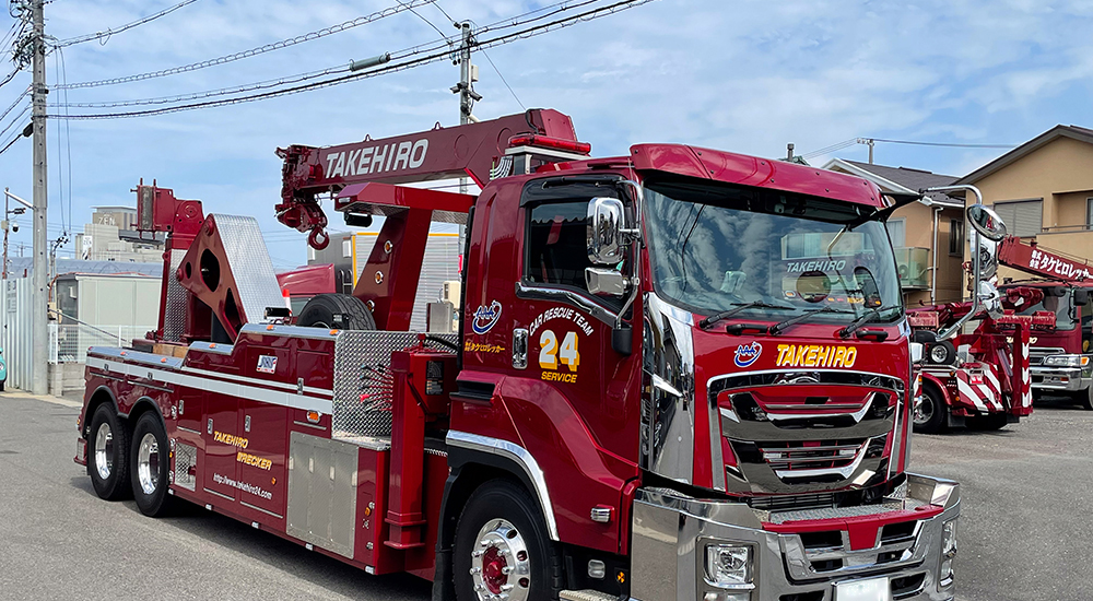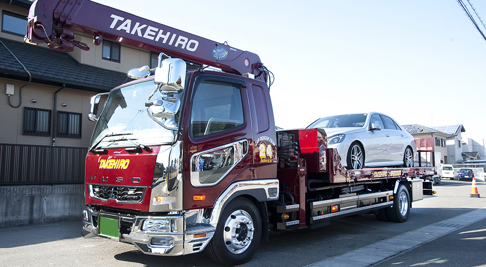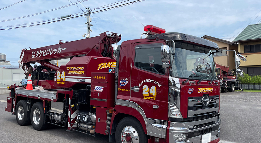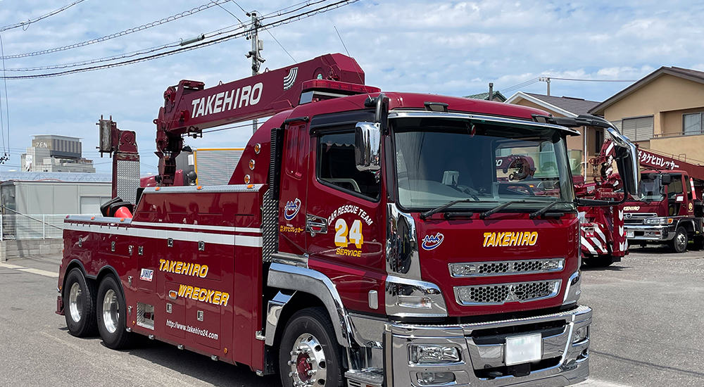 タケヒロレッカーは自動車の事故時におけるサポートを提供しているレッカー会社です。あらゆる自動車のトラブルに対するレッカーロードサービスの他に、事故車・ 故障車からお引越しまで全国陸送業務を承っているトータルサポートなど様々。また、タケヒロレッカーでは自動車の水没事故や山での転落事故にすばやく対応できるように 自社独自のネットワークを駆使して緊急時におけるサポートも万全です。