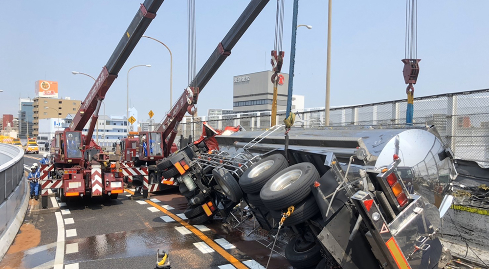 当社では、道路交通の迅速な回復に努め、被災地全体の復旧に尽力しています。