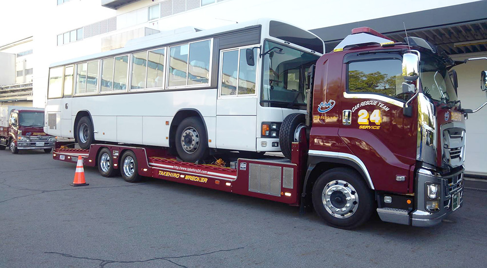 大型トラック、バス、トレーラーなどの重量のある車輛をけん引・運搬対応できます!